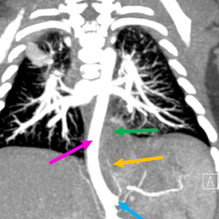 Congenital pulmonary airway malformation (CPAM) is the most common type of congenital lung lesion, frequently diagnosed antenatally. Bronchopulmonary sequestration is the most common lesion in the differential diagnosis of CPAM, the former being defined by the absence of a connection to the tracheobronchial tree. In contrast to CPAM, which derives its blood supply from the pulmonary artery, the blood supply of sequestrations is derived from an anomalous systemic artery rather than the pulmonary circulation.