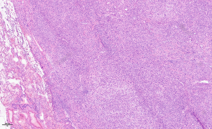 Macroscopically, the nodule was well-circumscribed, tan-white with a homogenous consistency. An intraoperative frozen section was performed (Figure 1 and 2). Representative histological images (Figure 3-5) and immunohistochemical stains are provided (Figure 6-8).